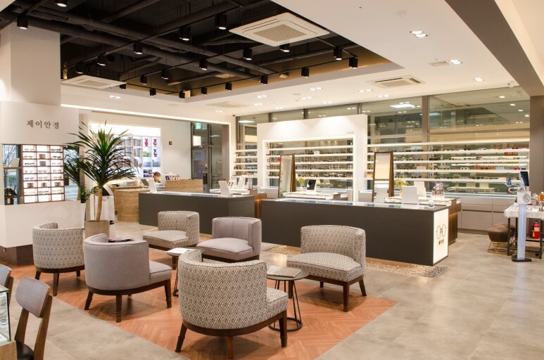 位於韓國首都圈的安山市,以三大櫃位分別展示MASKA眼鏡、太陽眼鏡、當季新品,為店舖內的主力品牌之一,店內配合日本品牌銷售,搭配明星宣傳海報和書籍營造店家整體高級感。