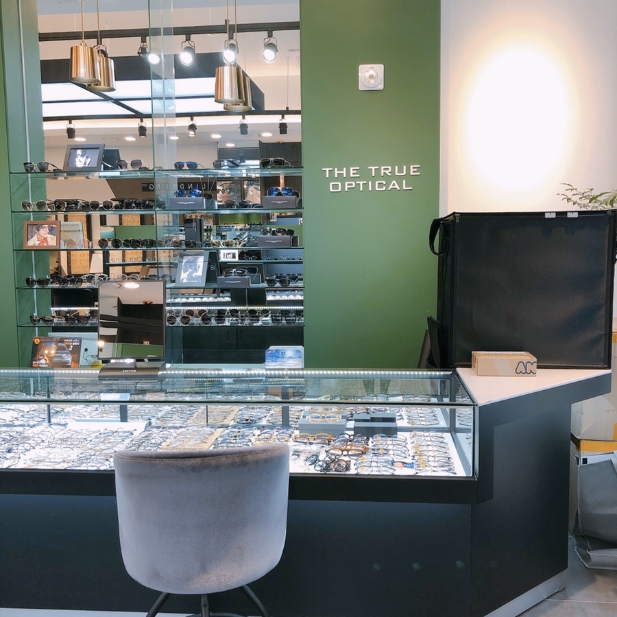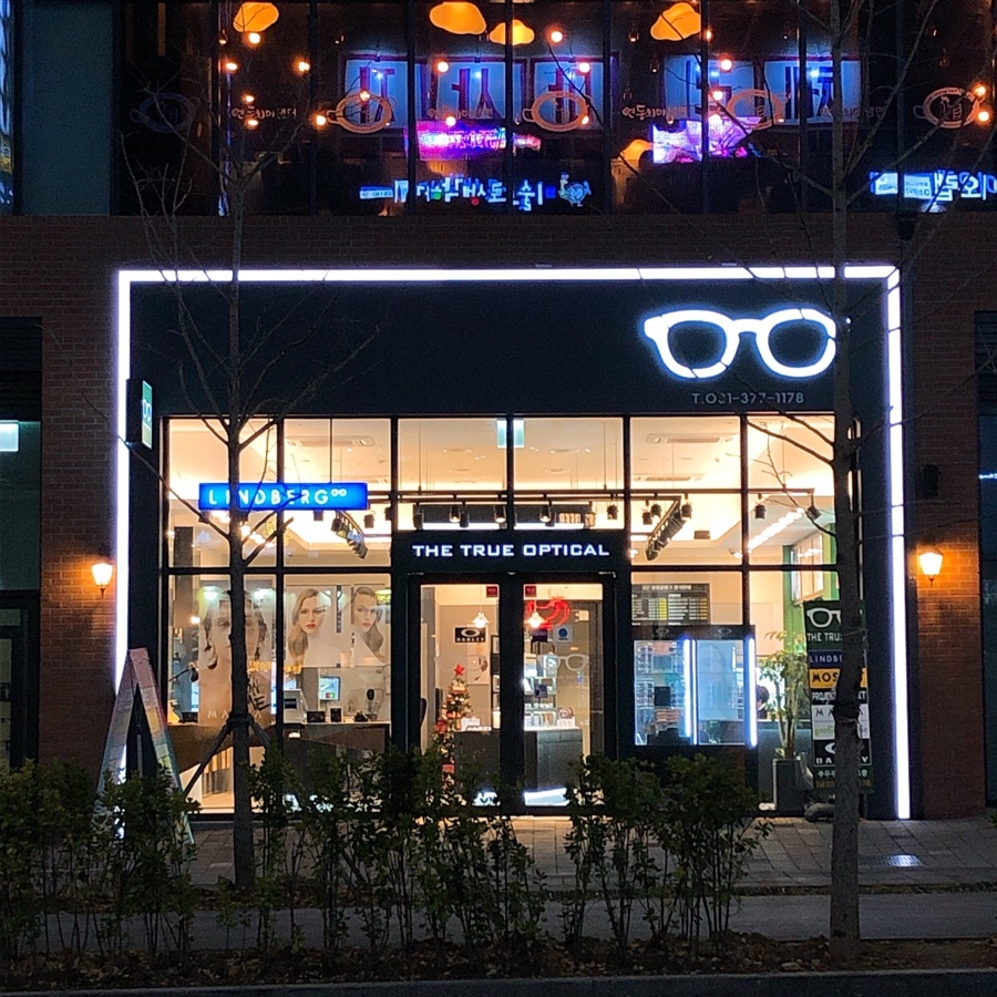 位於韓國京畿道首都圈SR線出口的THE TRUE OPTICAL,以沉穩黑色為大門門面,陳列道具和牆面以俐落的白色結合品牌的綠色為基底,進門感受到的是親切貼心的服務,輔以多樣化的品牌鏡框,整體店鋪舒適的氛圍,讓客人在挑選鏡框的過程中,能夠慢慢的選購。