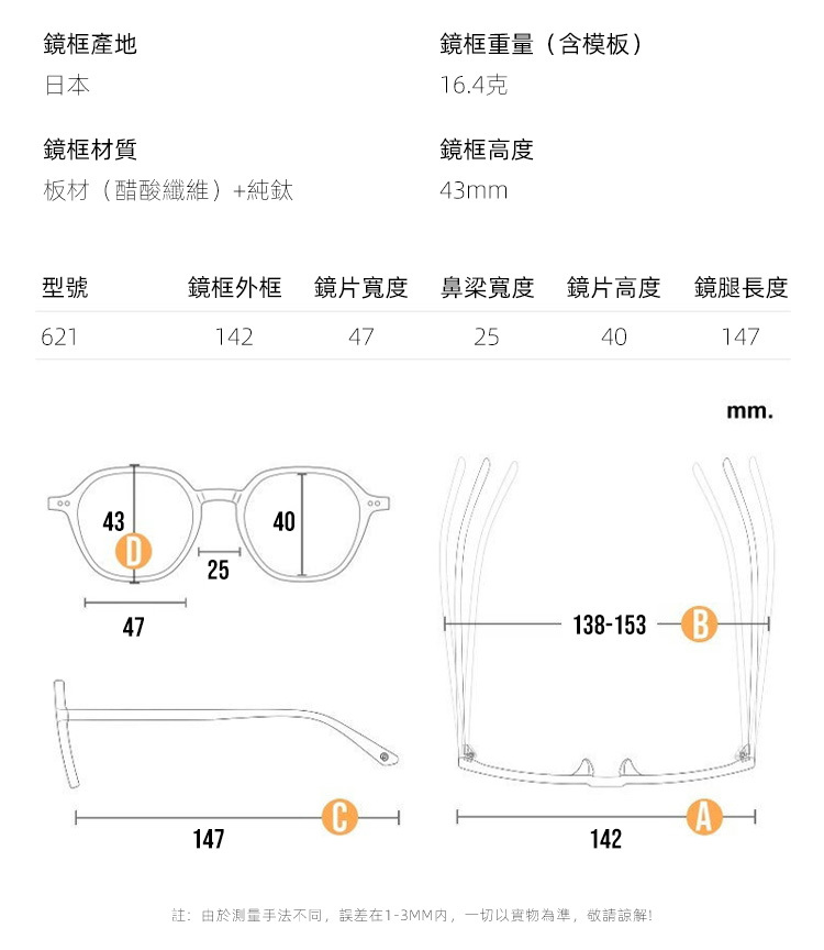 鏡框總寬:142mm